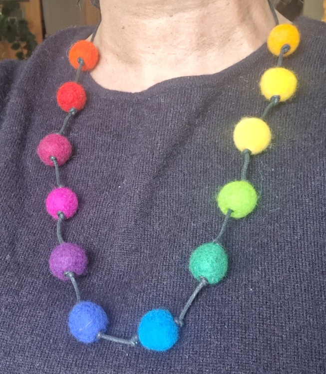 Kuličky uplstěné z vlny navlečené na šňůrce nebo lanku, některé varianty doplněné korálky a polodrahokamy.