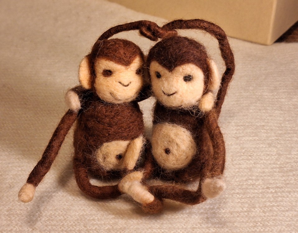Malá veselá opička plstěná jak jehlou tak na mokro (končetiny a ocas).