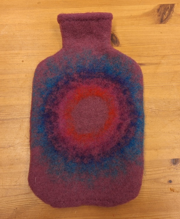Můžete na něj vyplstit obrázek - pomocí držáku pěti jehel - v Pomůckách - a podložky na plstění - v Pomůckách, barevnou vlnu najdete v Materiálech.